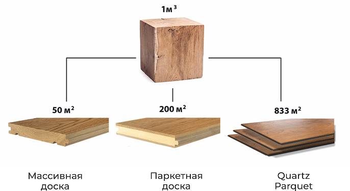 На 833 м2 кварцевого паркета уходит всего 1 м3 древесины.